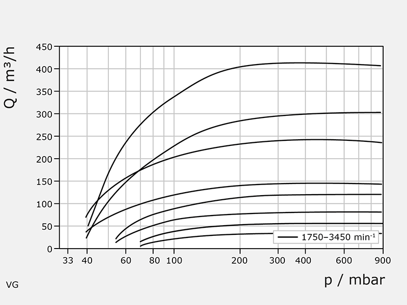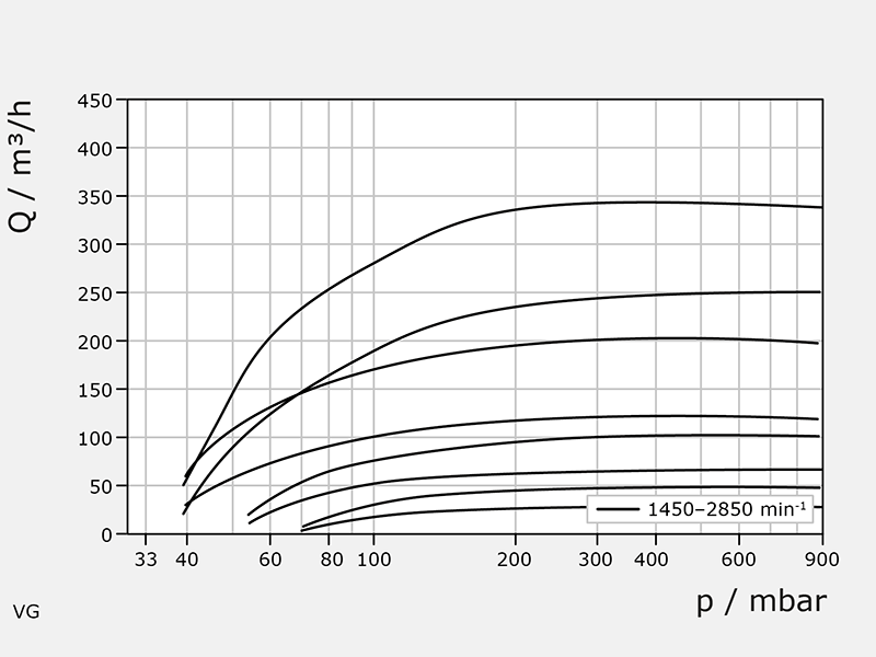 | Fördermenge | Q (max) = 340 m³/h (50 Hz) Q (max) = 410 m³/h (60 Hz) |