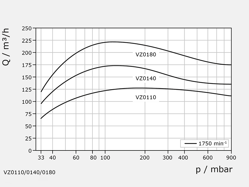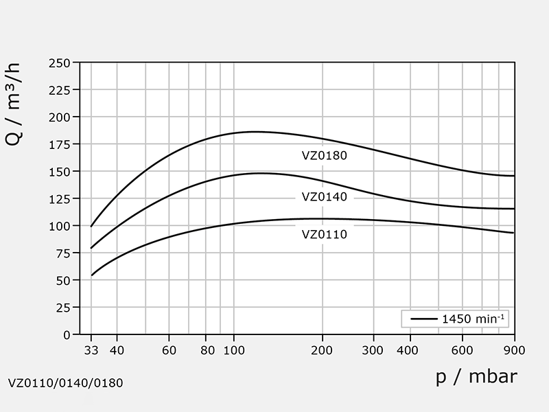 Förderhöhe max. 33 mbar abs.