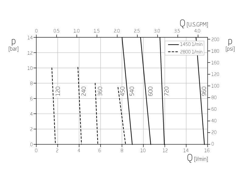 | Förderhöhe | H (max) = 14 bar (50 Hz) H (max) = 14 bar (60 Hz) |